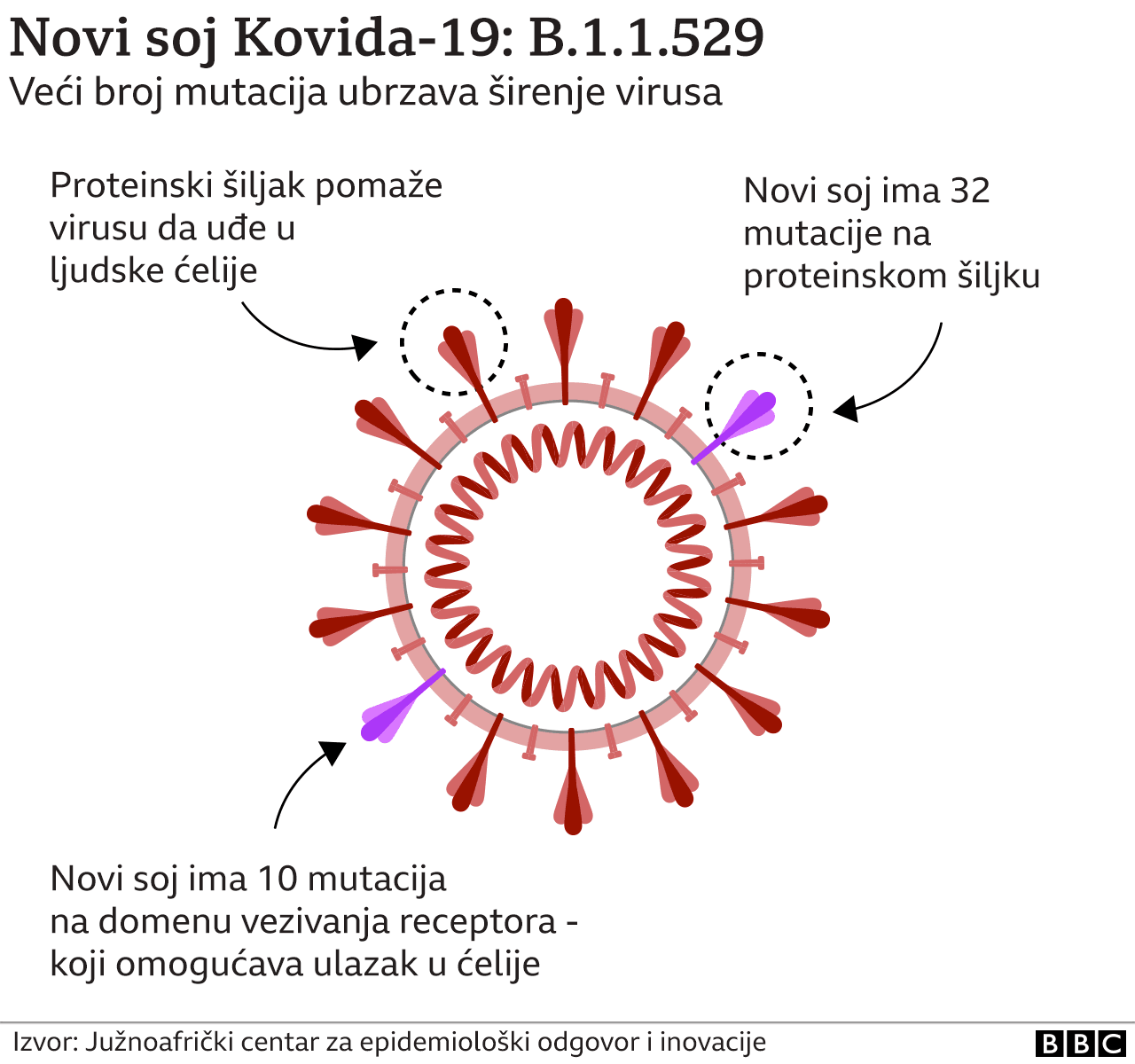 • BBeta (B.1.351), prvi slučaj zabeležen u Južnoj Africi, a onda se raširio u još najmanje 20 država