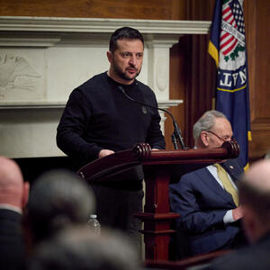 Kada je Zelenski stigao na sastanak iza zatvorenih vrata sa američkim senatorima, dobio je blagi aplauz. Sa njim su bili Čak Šumer, lider demokratske većine i Mič Mekonel, republikanski lider u Senatu.