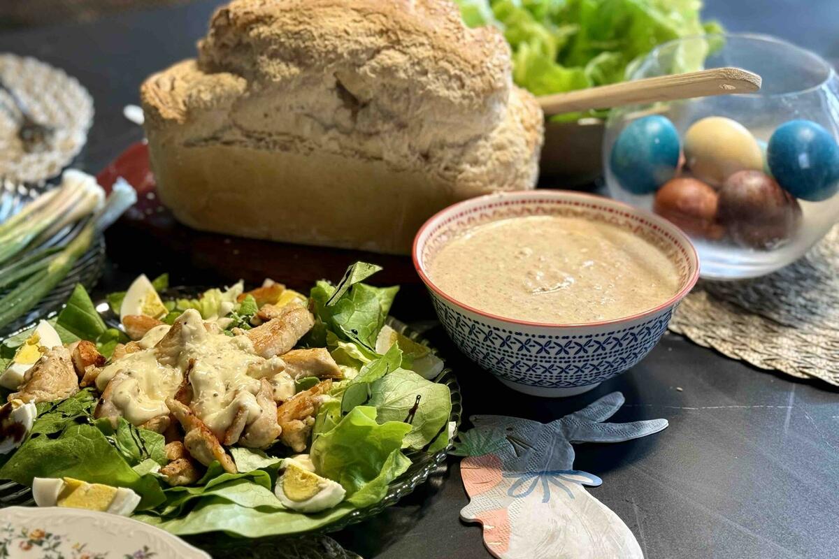 Ova kombinacija daje savršen balans: svježina zelene salate, punoća jaja, hrskavost piletine i bogat, kremast dresing. Ako želiš, možeš dodati i krutone ili cherry paradajz za još više teksture i ukusa.