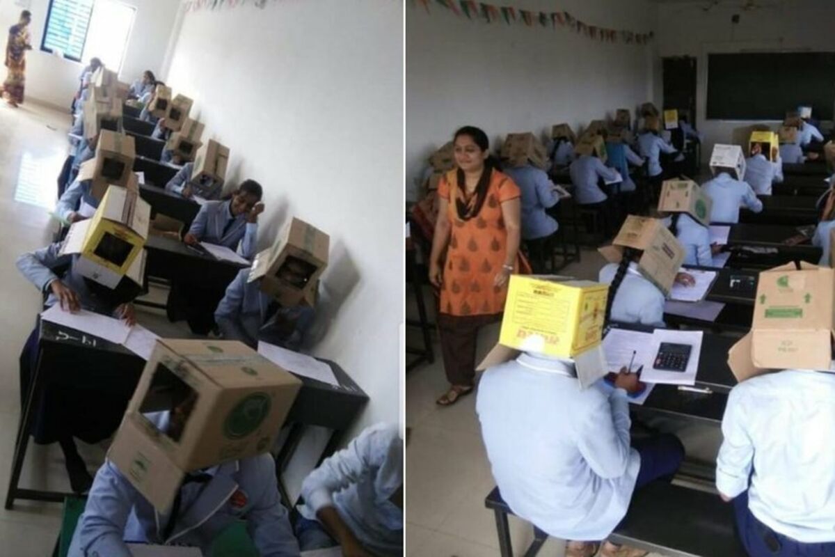 Studenti jednog indijskog koledža dobili su neobičan zadatak tokom testa iz hemije - da nose kartonske kutije na glavi- kako ne bi prepisivali.