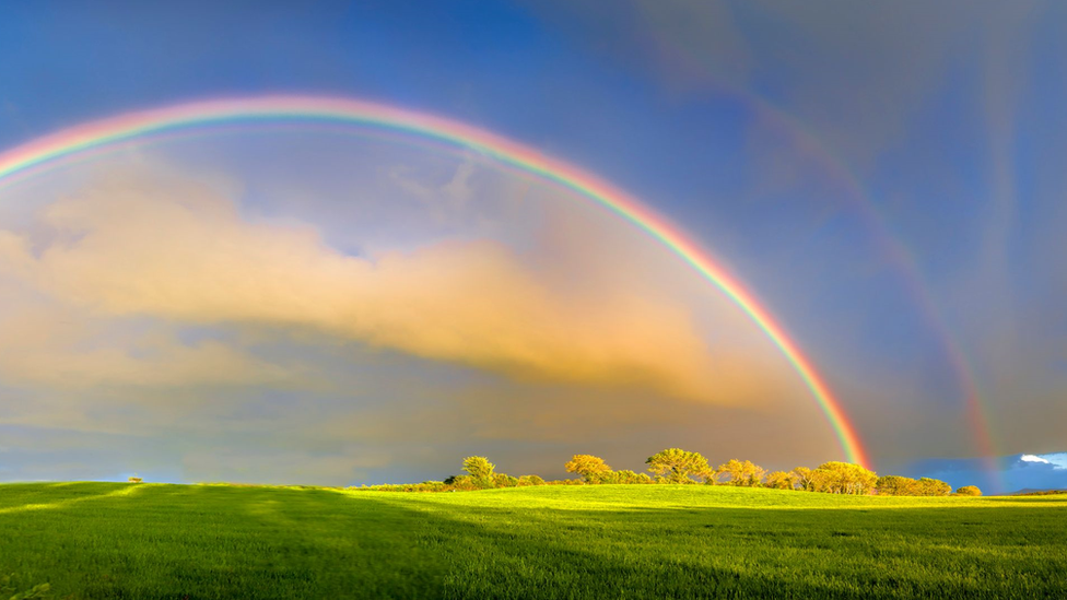 Ukoliko pada kiša dok sija sunce, onda se svetlost razdvaja na različite talasne dužine sa svakom kapljicom, a prelamanje koje nastane raspršuje sve boje u atmosferu.