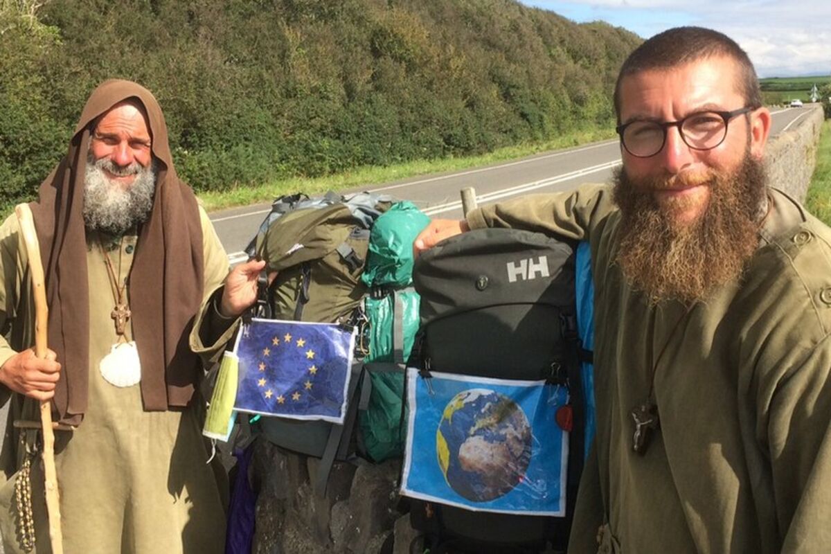 Dvojica italijanskih monaha krenuli su peške u „hodočašće mira" od Londona do Irske i trenutno se nalaze u Velsu.