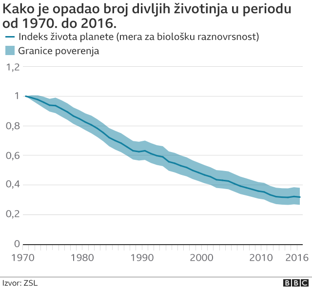 „Ako se ništa ne promeni, populacija divljih životinja će, sasvim sigurno, nastaviti da pada, što može da dovede čitav divlji svet do izumiranja i da ugrozi ekosisteme od kojih zavisimo", dodao je.