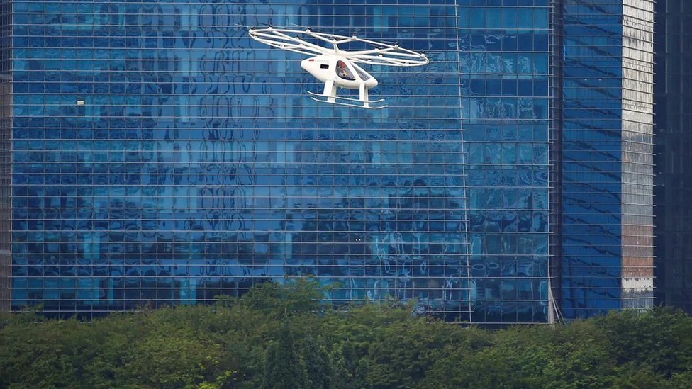Nemački Volokopter, na primer, reklamira svoje Volositi vozilo kao prvi komercijalno odobreni električni vazdušni taksi, vozilo koje će na kraju leteti bez pilota.