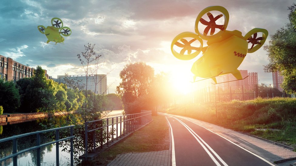 Mnogo manji od komercijalnog aviona, većina je osmišljena sa rotorima umesto krilima, koji omogućuju vertikalno uzletanje i sletanje. Tiltrotori, na primer, omogućuju efikasnost u pravolinijskom letu na duže udaljenosti, dok su multirotori pravljeni da smanje buku prilikom kretanja lebdenjem.