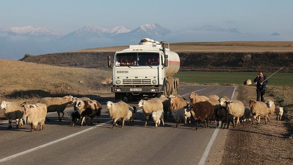 Pastir je životinje poterao preko puta minut pre nego što će azerbejdžanska kolona tuda proći.