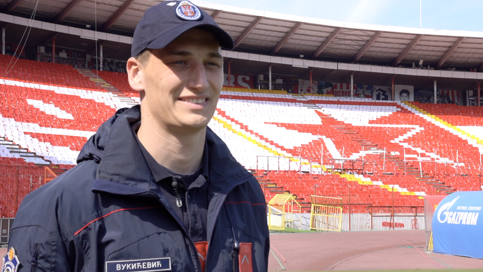 „To je nestvarna priča, ali stvarno je tako bilo", priča Đorđe dok se sa BBC novinarima šeta pored terena stadiona Rajko Mitić, na kome je utakmica bila odigrana nekoliko dana ranije.