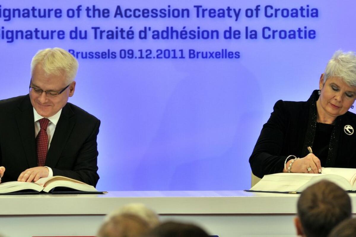 Pre deset godina, tadašnja premijerka Jadranka Kosor iz reda vladajuće Hrvatske demokratske zajednice (HDZ) početkom decembra 2011. stavila je potpis u Briselu na ugovor koji dve godine kasnije uvodi zemlju u Evropsku uniju.