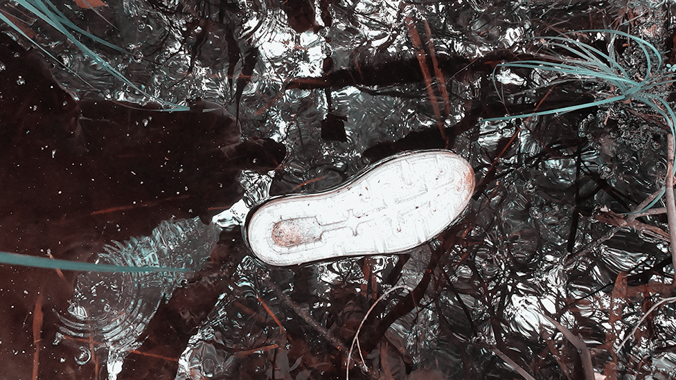 U blizini njih, u potoku bile su potopljene bele patike veličine 43.