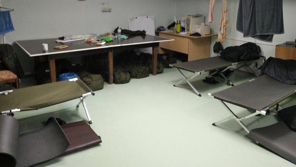Pogon nije pravljen za spavanje, tako da su načinjene privremene spavaonice - neki spavaju na krevetima na sklapanje i stolovima, dok drugi spavaju na podu.