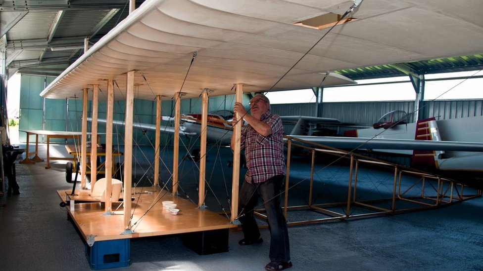 Inovator je konstrukciju izradio od drveta, upotrebio je i metalne strune, dok su krila bila sačinjena od platna.