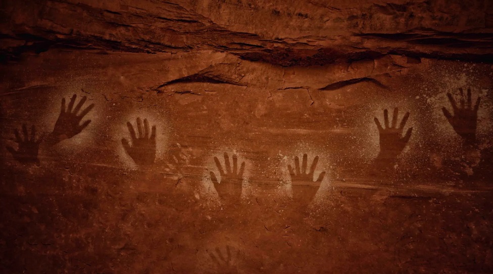 „Ova fotografija nastala je u Juti. Smatra se da su 4.000 godina stari, ali su u izvanredno očuvanom stanju. Možete da zamislite drevnu osobu kako prislanja dlan uz crveni zid, uzima oker i nanosi boju na stenu. Ovi otisci ruku su moćan odjek od pre više eona. Zamišljam grupu lovaca kako sede u senci, možda govoreći: 'Zašto ne bismo ostavili svoj potpis ovde?' Za mene, suština bi mogla da bude u samom postojanju, kao da kažu: 'Ovde smo.'"
