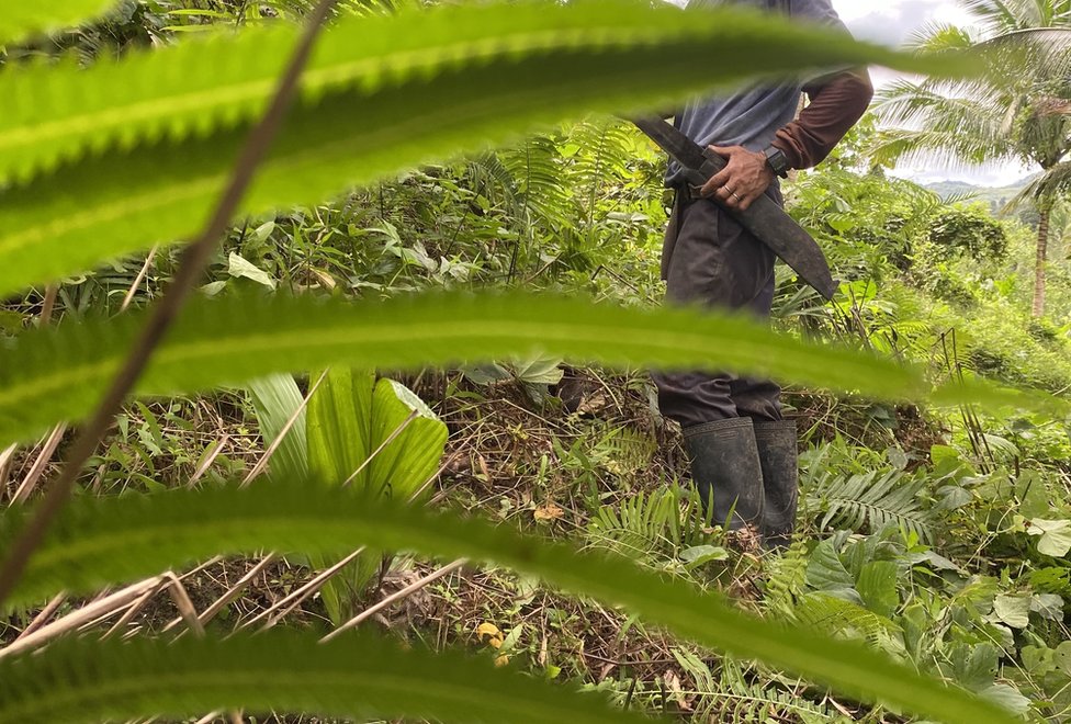 Pored potoka koji tu protiče, on spušta svoju tešku torbu sa mladicama i usmerava armiju volontera koji rade za fondaciju Haribon - desetak muškaraca i žena koji nose torbe sa mladicama teškim i do 15 kilograma.