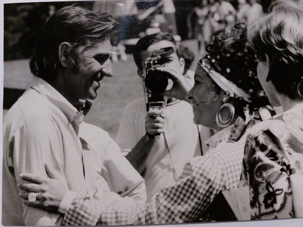 Ova pomalo paradoksalna fotografija snimljena u leto 1971, na kojoj su i glumac Hardi Kriger, ali i prva dama Jugoslavije Jovanka Broz i Hamdija Pozderac, predsednik Skupštine Bosne i Hercegovine, jedna je od najupečatljivijih sa snimanja filma Sutjeska u režiji Stipe Delića.