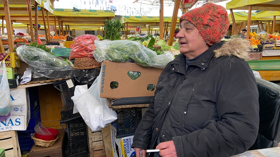 „Ovde sam bila i pre rata i za vreme rata i sada sam ovde, sve vreme", navodi kratko, obučena u crnu jaknu i štrikanu šarenu kapu, ispod koje viri par lepih minđuša.