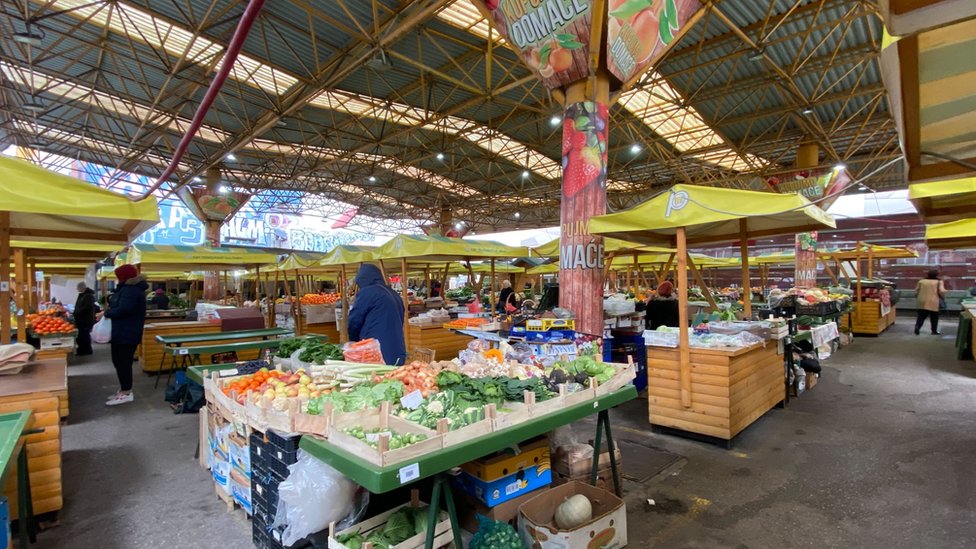 Iza njih, još desetak ljudi se po prohladnom januarskom jutru mota među tezgama ispunjenim mahom voćem i povrćem.