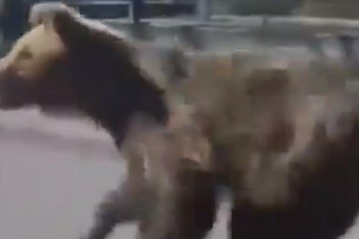 Na snimcima na društvenim mrežama vidi se kako medved trči putem, a na jednom od njih i kako nasrće na muškarca na trotoaru.