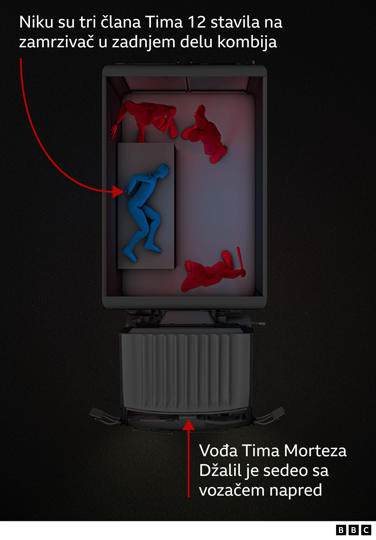 Prošlo je skoro sat vremena pre nego što je ponovo primećena, navodi se u izveštaju, kada je privedena i ubačena u vozilo tima - kombi bez ikakvih oznaka sa zamrzivačem u zadnjem delu.