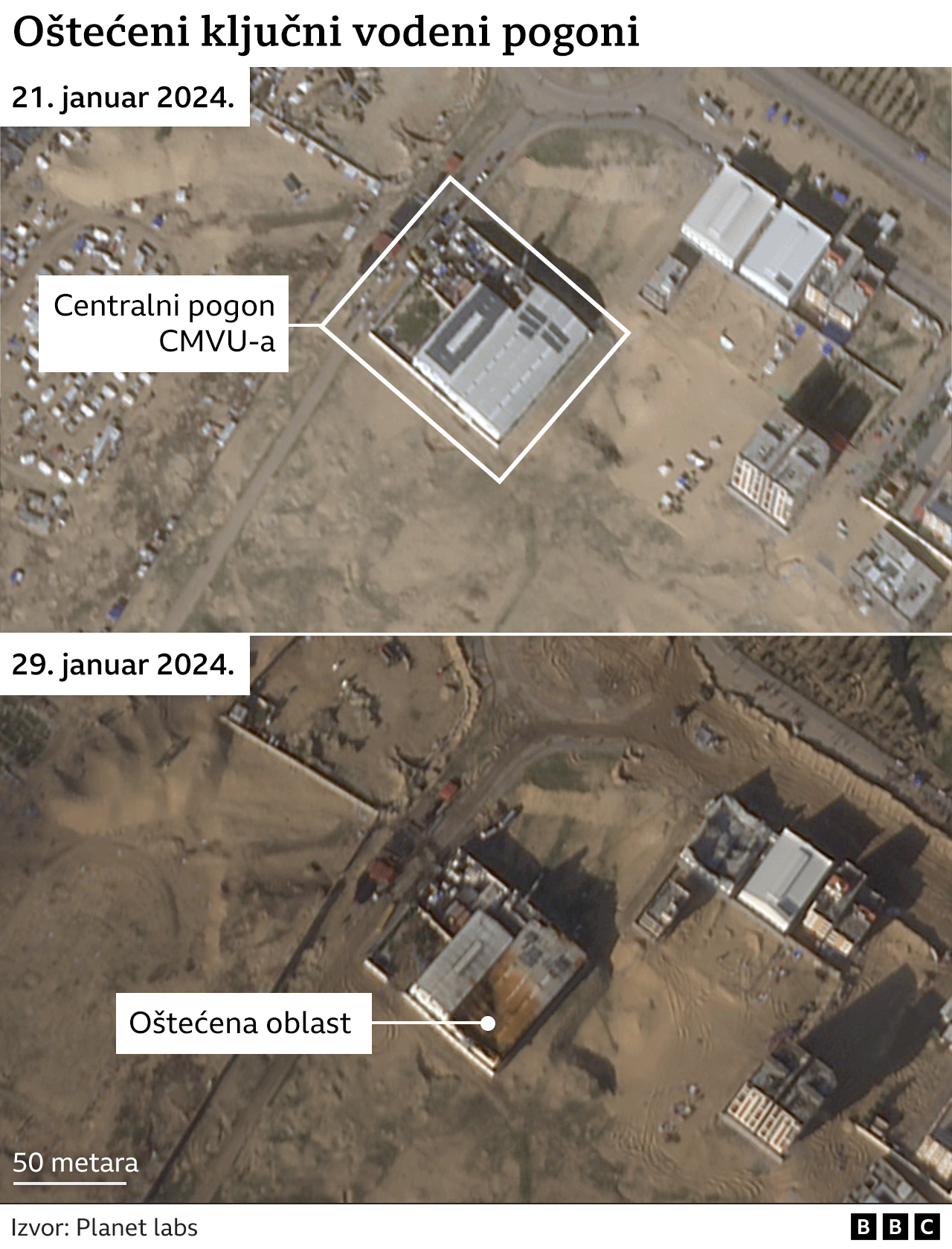 Stotine vodovodnih i sanitarnih pogona u Gazi oštećene su ili uništene otkako je Izrael započeo vojnu akciju protiv Hamasa, pokazala je satelitska analiza BBC tima za utvrđivanje činjenica.