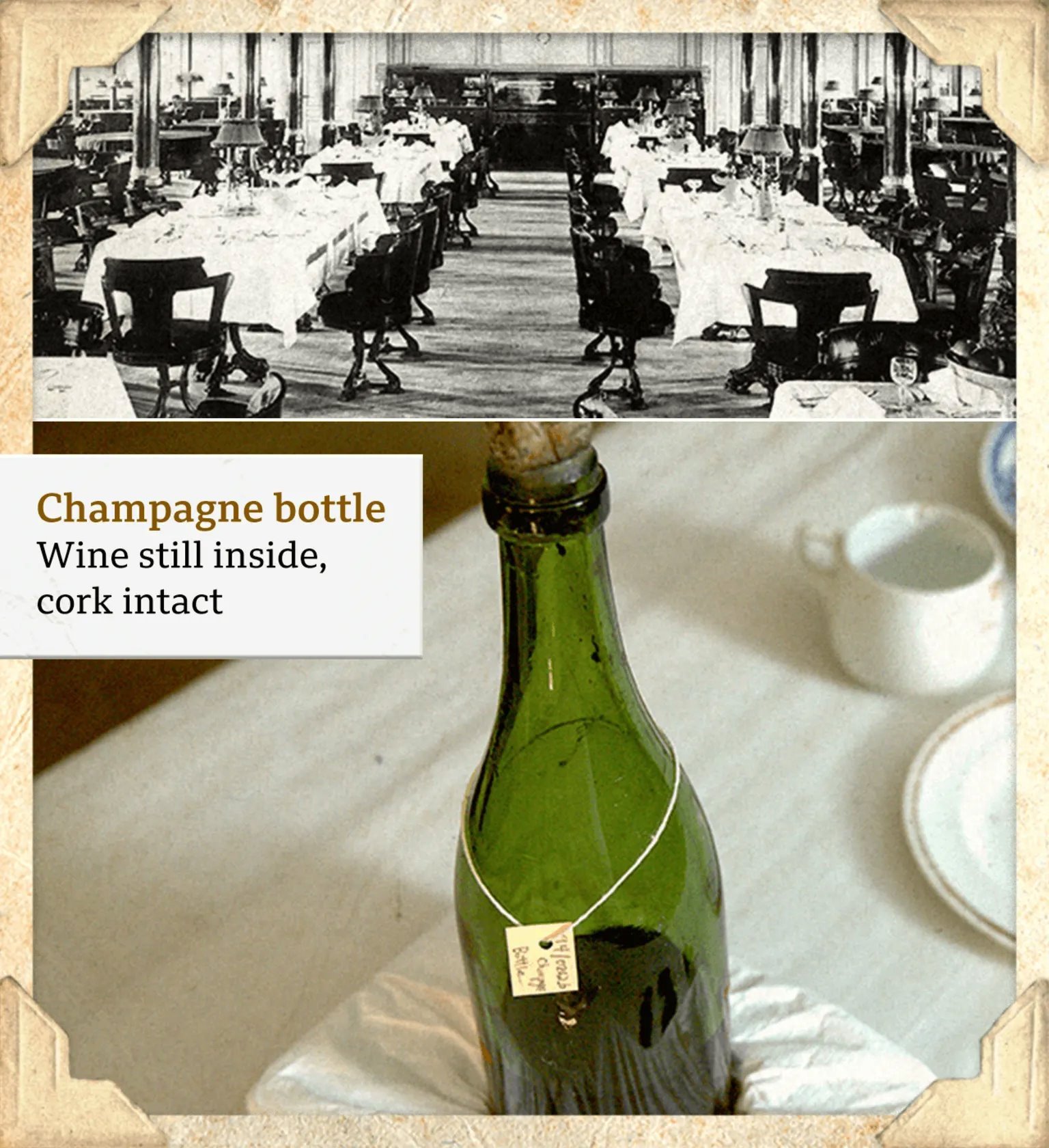 Među sačuvanim stvarima je i boca šampanjca - puna, sa pampurom.
