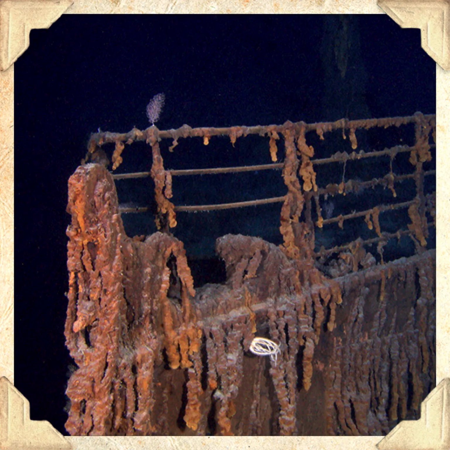 Nakon što je udario u santu leda 1912. godine Titanik se prepolovio i potonuo zajedno sa svim što je bilo na njemu, pa su krhotine broda i stvari razbacane na ogromnoj površini dna okeana.