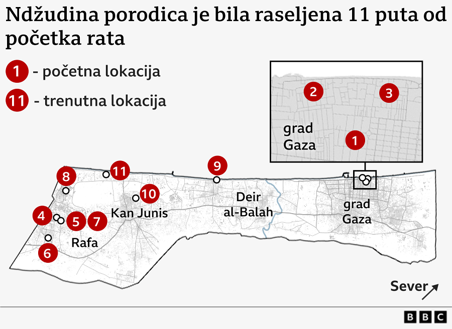 Ndžud i njeno četvoro dece morali su da se sele 11 puta zbog izraelskih naredbi za evakuaciju ili vazdušnih napada.