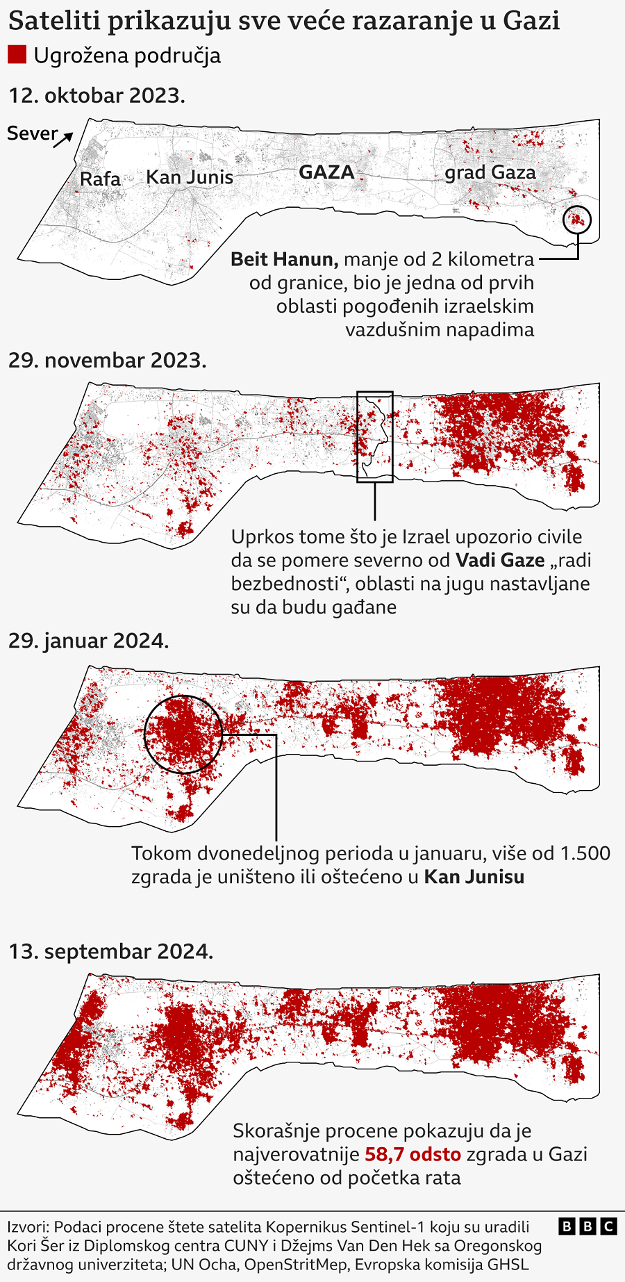 Izraelska operacija u Gazi započela je u severnom delu pojasa i pomerala se po čitavoj mapi ispod sve dok nije stigla do Rafe na granici sa Egiptom, izazvavši ogromna razaranja usput.