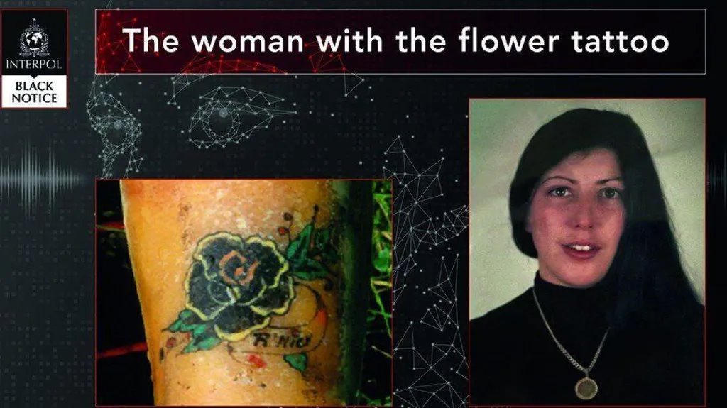 Rita Roberts, Britanka ubijena u Belgiji, identifikovana je kada je njena porodica uočila prepoznatljivu tetovažu crne ruže na njenom telu u izveštaju BBC-ja o prvom pozivu Interpola.