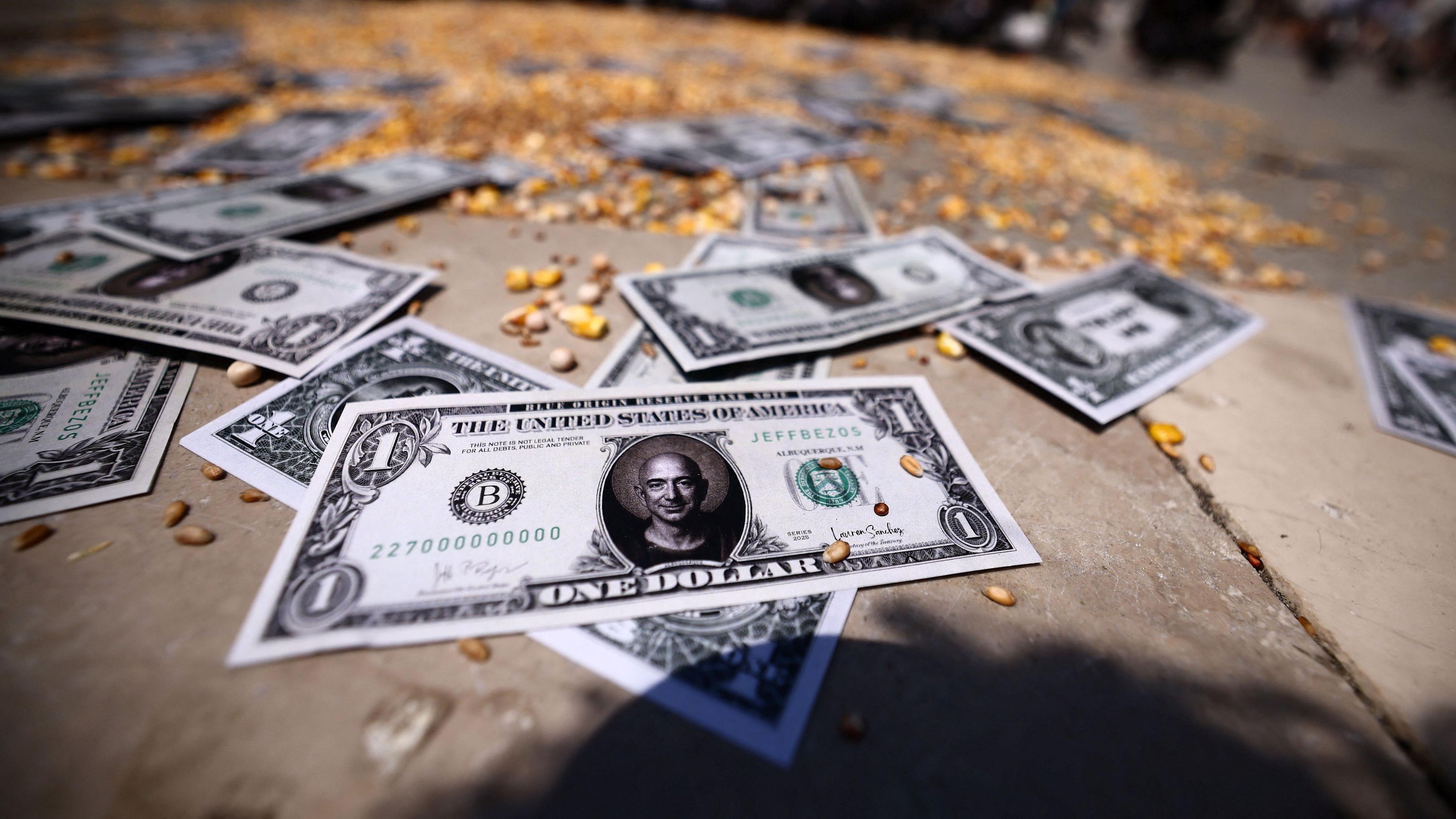 U ponedeljak, aktivisti iz grupe koja sebe naziva Svi mrze Elona, odmotala je ogromnu fotografiju Bezosa na jednom od centralnih trgova, uz slogan: