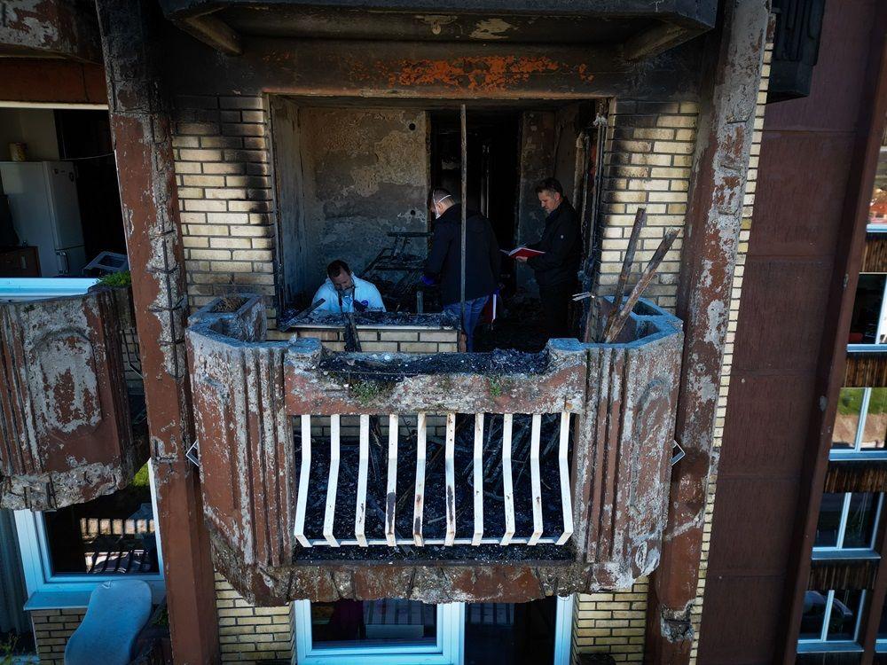 Crni ostaci gareži na sedmom spratu Doma penzionera ukazuju gde je buktinja bila najsnažnija.