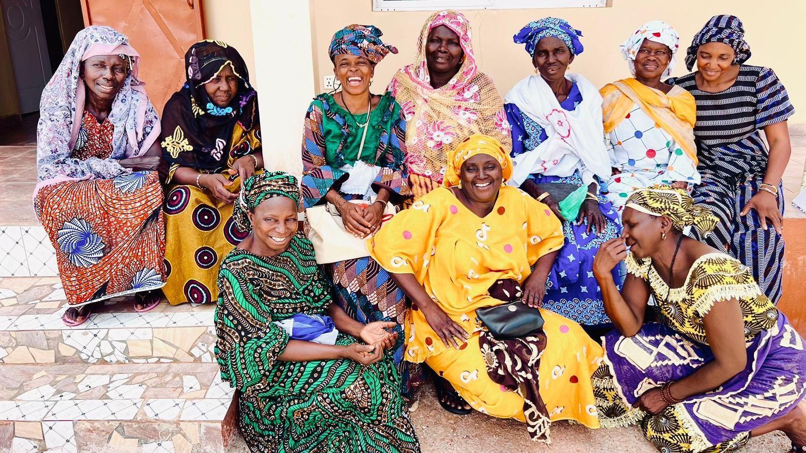 Grupa žena, odevena u jarku, šarenu odeću, njiše se i tapše u ritmu improvizovanog bubnja.