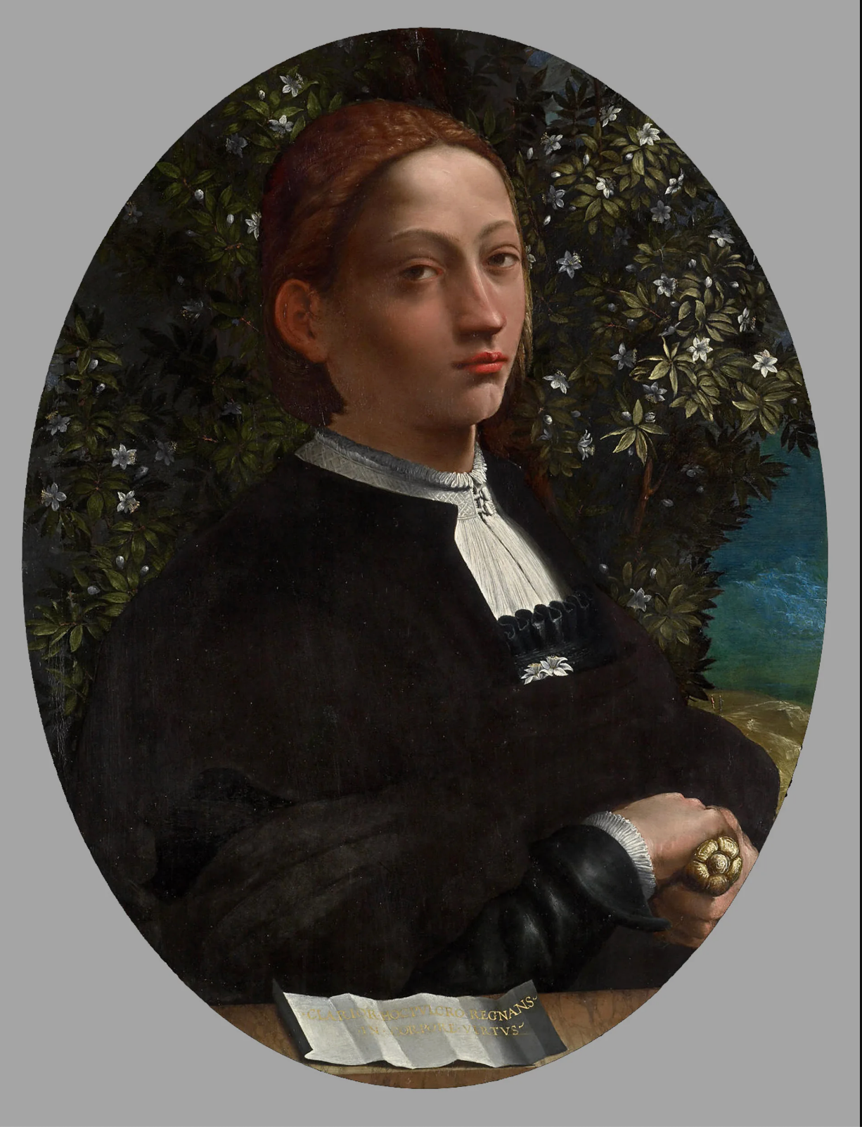 Drugi Broncinijev portret prikazuje ženu „pod nesumnjivim uticajem Eleonorinog stila, ona nosi zift crnu haljinu sa nabranim rukavima u španskom stilu sa mrežicom za kosu i naborima", kaže Lizbi.