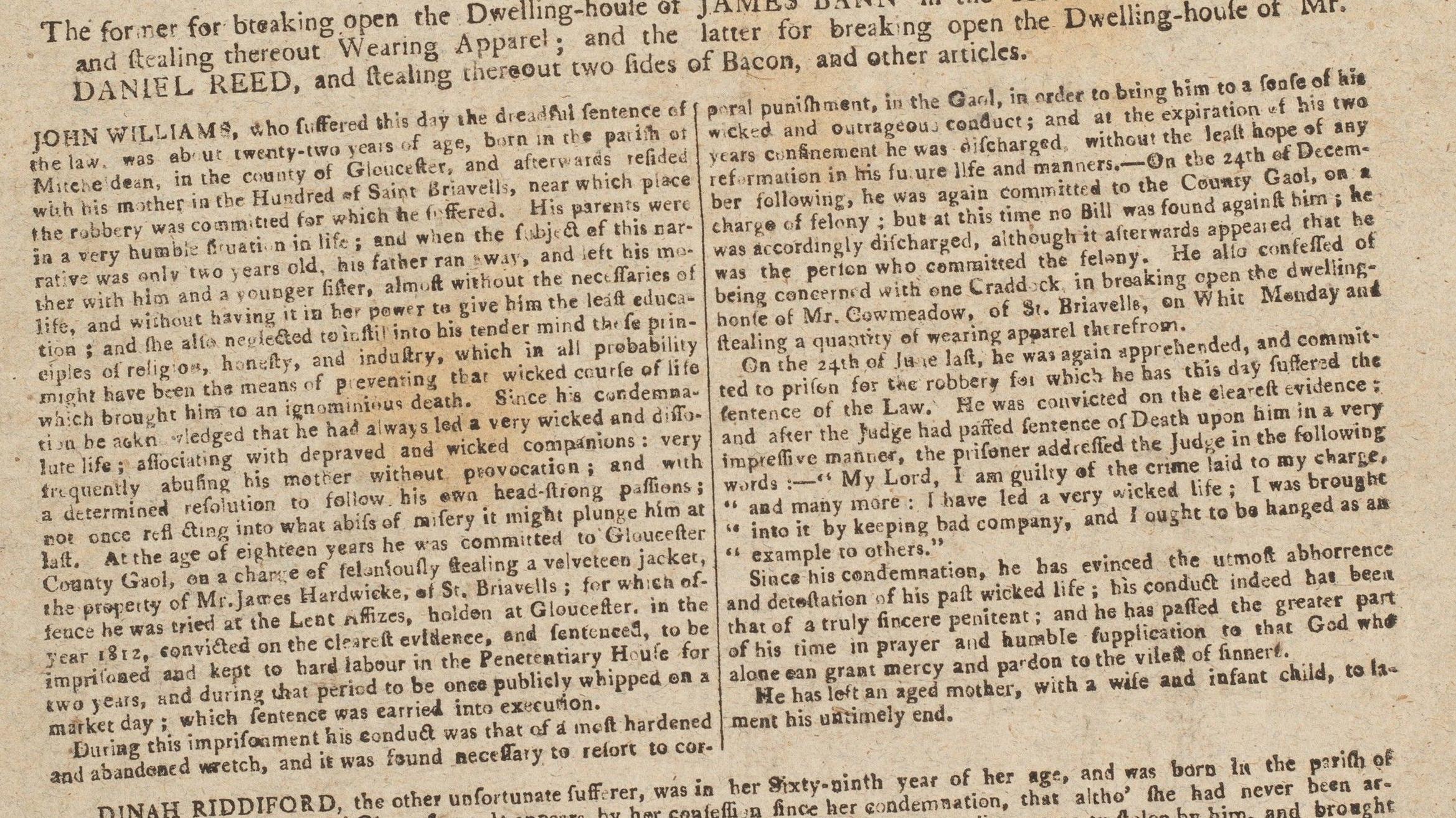 Njih dvoje su pogubljeni u zatvoru u Glosteru 7. septembra 1816. godine jer su provalili u kuću i ukrali odeću, slaninu i bakarni kotao.