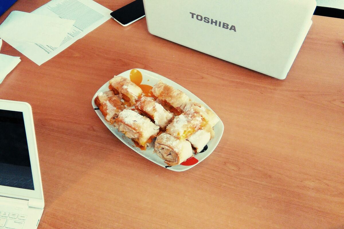 Jednog kišnog ponedjeljka ovu pitu donijela je Milica na posao. Posao je stao,a raspoloženje se popravilo:)