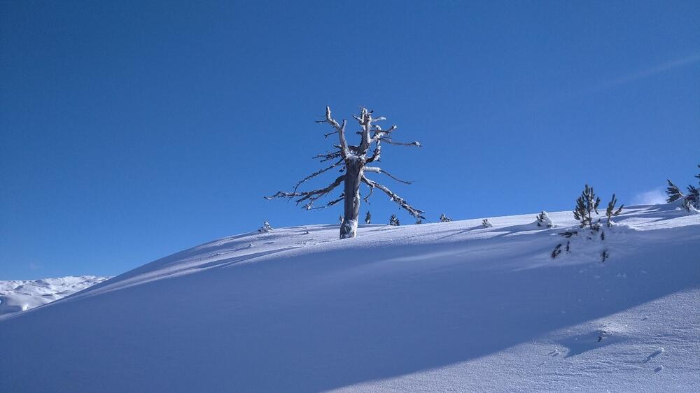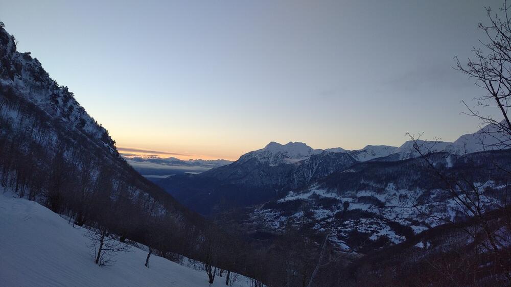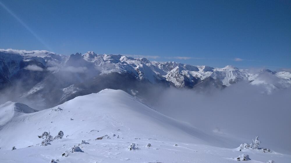 Znajući da su opasnosti od lavina minimalne u ovom dijelu, odlučismo se da pokušamo krpljama doći do vrha Jedini bor (2100 mnv) iz Dobrodola, iako smo znali da treba preći veliko rastojanje.