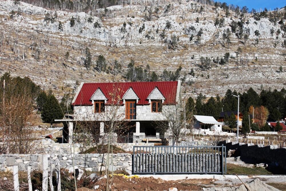 Ovdje smo parkirali auto i krenuli pored kuće prema uzvišenju. Tekst u Vrhovima CG je pisan prije više od 4 godine. U međuvremenu je ovdje nastupio građevinski bum koji je vjerovatno uzrok nestanka početnih markacija. Požari su ovdje česti ali je prije neku godinu ogroman požar opustošio ovo područje te uništio veći dio staze sa strane koja se vidi sa Kučkih korita. Skoro sve drveće je izgorelo. Na njima su se nalazile markacije. Neizgoreli djelovi stabala su zatrpali stazu. Ovaj dio uspona ka vrhu je i najteži upravo zbog toga što nema ni staze ni markacija. U glavi sam imala šemu putanje koju sam vidjela na stranici Vrhovi Crne Gore. Autor mi je dozvolio da pozajmim tu sliku uz pomoć koje je uspon bio neuporedivo jednostavniji.