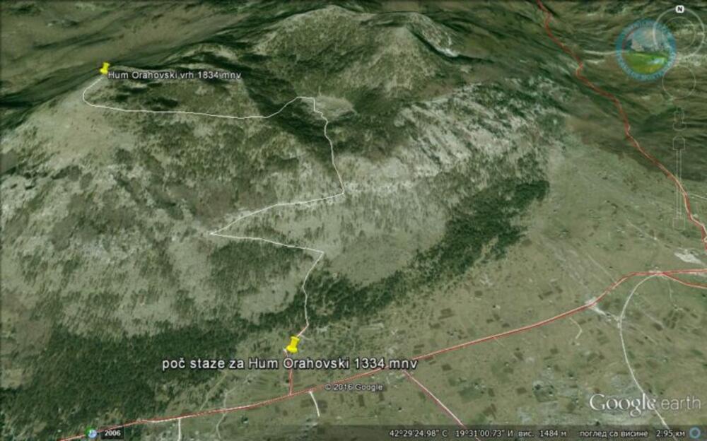 Hum Orahovski je dio Kučkih planina. Vidi se iz većeg dijela Podgorice. Uspon počinje sa Kučkih Korita. Čula sam odavno da je pogled sa vrha izvanredan, ali sam mislila da je uspon teži i stalno sam ga odlagala. Zahvaljujući korona virusu koji je “zaključao” opštine tokom vikenda konačno sam stigla i do ovog vrha. Kao i obično, prije kretanja na turu je obavezno čitanje teksta sa Vrhova Crne Gore. Početak staze je otprilike na polovini asfaltnog puta koji vodi od izlaska na visoravan Kučka Korita do pojila za stoku. Bili smo sigurni da ćemo naići na putokaz pa nisam obratila pažnju na fotografiju koja je označavala početak staze. Posle male vožnje u krug otvorismo ponovo tekst i locirasmo kuću odakle startuje tura. Kuća se nalazi pored puta sa lijeve strane iz pravca Podgorice.