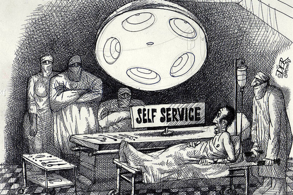 Ne znam da direktor ne odlučuje o liječenju osiguranika? Znam, zato sam i pomenula traženje novca po dnu kase. Ne može zbog komplikovane procedure? Neka je pojednostave. On ili onaj koji ga je ustoličio po partijskoj kvoti. Je li i to opošljeno po proceduri? Ne, ona važi samo za nas. Za njih je skraćena - otmi, ukradi, sredi, namjesti, obrukaj, smijeni, premlati, uhapsi, osudi...