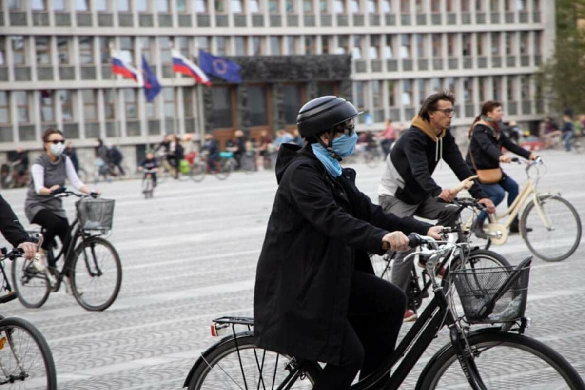 Ljubljana je uzavrela još pre nego što je nova vlada izabrana, što je postalo mogućno tek pošto su tri korumpirane male stranke ušle u koaliciju sa Janšom. Čim je uveden karantin, izmišljeni su novi oblici protesta, koji se odmah prenose na internet: natpisi na prozorima i balkonima, video zapisi, a kada su dozvoljeni neki sportovi -golf i badminton pred skupštinom, balet; onda su lepljena papirna stopala pred parlamentom sa raznim natpisima - rezervacije za mesto na budućim demonstracijama, i biciklističke šetnje po gradu. Konačno, na dan otpora protiv okupatora, 27. aprila, pojavilo se nekoliko lažnih poziva na demonstracije pred skupštinom. Odgovor je bio sjajan: pojavilo se oko 500 ljudi, uglavnom na biciklima, uredno udaljenih i sa mnogim natpisima: nisu demonstracije, a nije ni da nisu… U Mariboru su organizovali sličan protest. Za praznik rada, opet je najavljen biciklistički protest. Policija je počela da registruje ljude, preti im po 400 evra kazne.