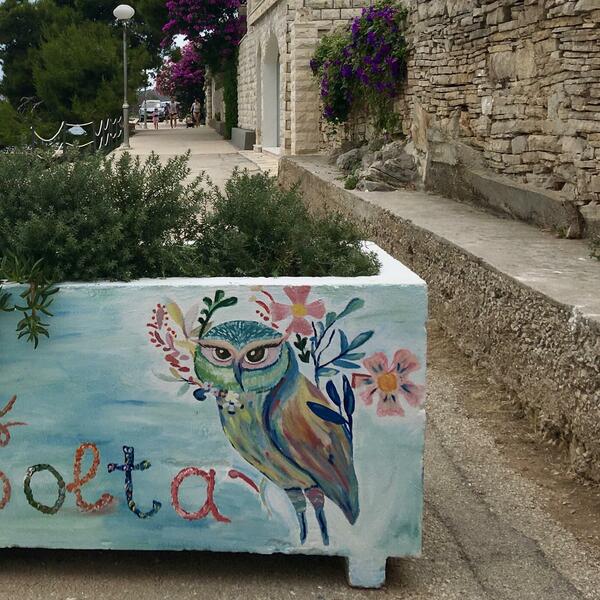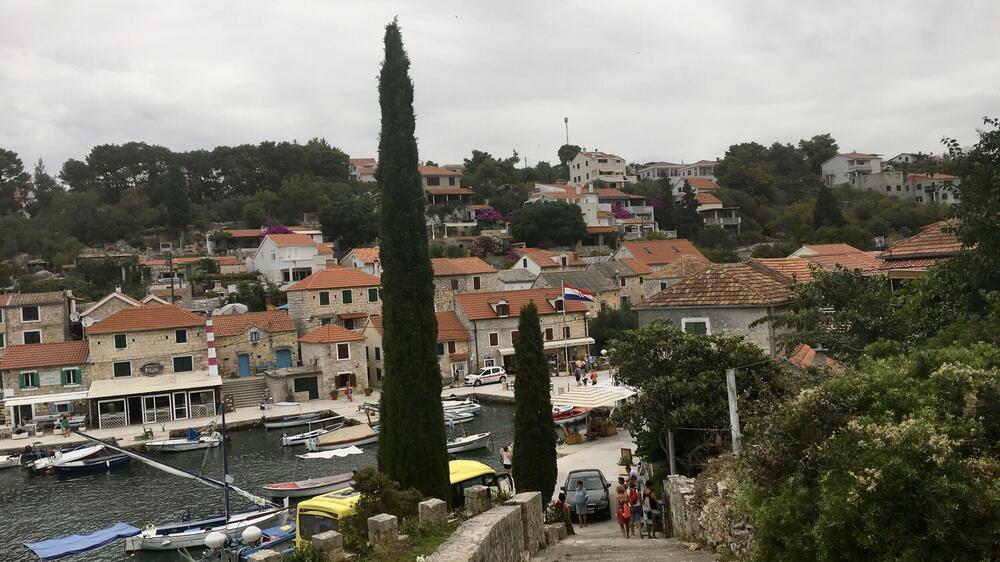 Vraćamo se centru mjesta, na dnu lijevkaste uvale. Vrijeme je da se osvježimo u jednoj od konoba. U njoj nam „riblju juhu” donosi djevojka iz Srbije. Tek je počela da radi, prvi put je u Hrvatskoj. U baštu sijeda grupa sredovječnih Poljakinja. Slušam govornike slovenskih jezika kako, s mukom utjerani u engleski jezički kalup, razmjenjuju informacije o kuhinjskim produktima. Supa je, inače, bila dobra, ali količinski suzdržana, a po cijeni raskošna.