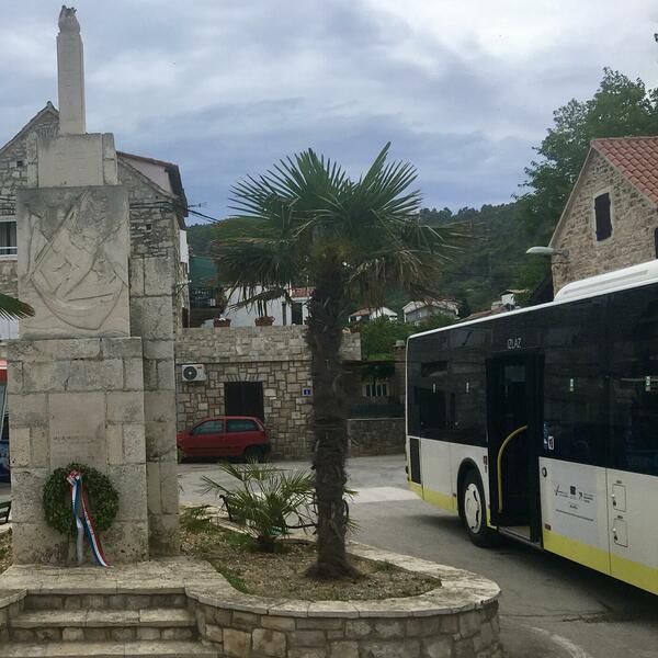 Za istorijska podsjećanja nema puno vremena. Oblaci se pomalo razmiču - jutrošnja vožnja trajektom je bila ugodna zbog stada oblačića koji su pokrili inače nemilosrdno sunce. Već posle dvadesetak minuta spuštamo se serpentinama prema uvali Maslinica. Izlazimo u mjestašce u kojem je život već na prvi pogled dovoljno usporen da podsjeti na ljetovanja šezdesetih i sedamdesetih godina prošlog vijeka. Jedan se čovjek zabavio čišćenjem svoje barke u luci. Na malom trgu, naspram table sa mapom mjesta, nalazi se - drvo masline.