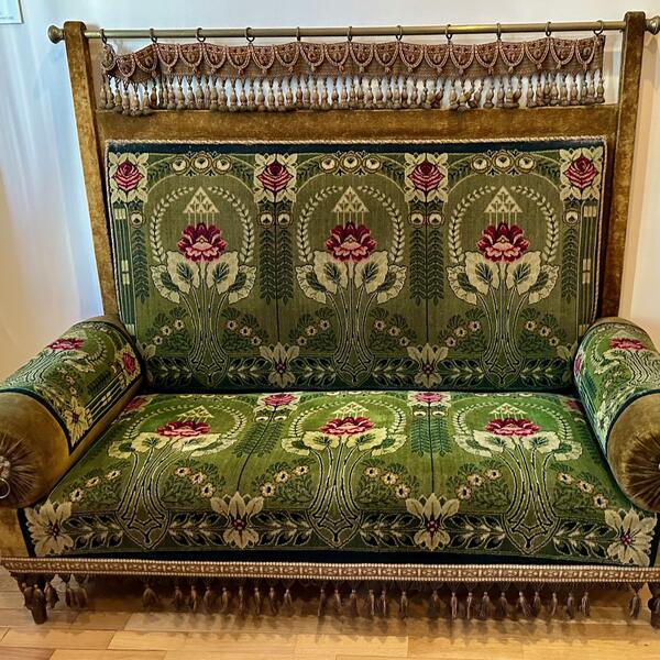 Sklopim li oči vidim na njemu davne živote otmenih muškaraca koji dosađuju damama svojim lovačkim pričama. Možda kanabe pamti i prve poljupce. Recitovanje. Rukoljube.