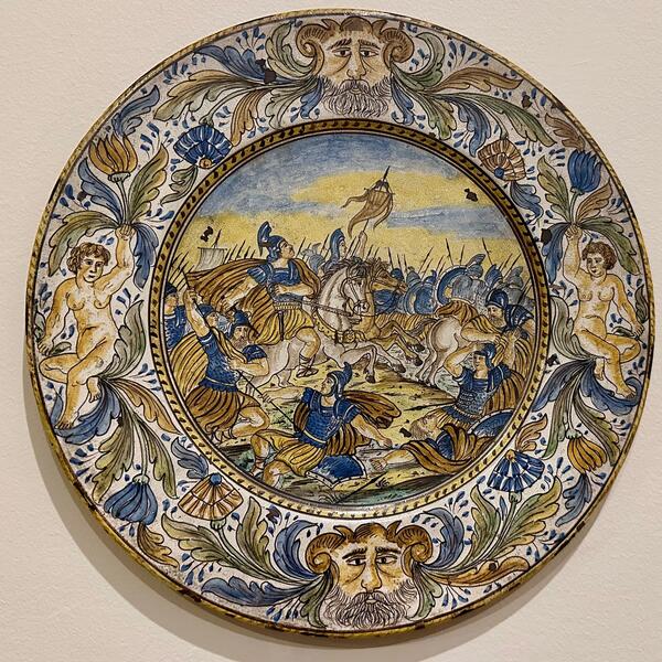 Muzejsko objašnjene veli da je urađen u tehnici “majolica”, koji je dobio ime po španskom ostrvu Majorka. Na njemu su još u 15. vijeku savladali vještinu pravljenja polukeramičkih oslikanih predmeta glaziranih kalajnom bijelom glazurom. Italijani su najprije uvozili ove predmete, a onda su i sami pokrenuli proizvodnju.