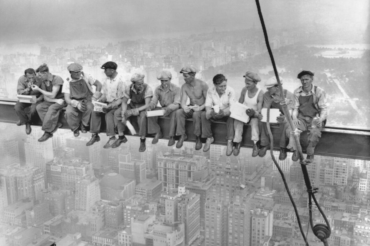 Ponovo je vrijeme za ručak na krovu svijeta. Izbor časopisa Time za "Ličnost godine" oživjelo je kultnu fotografiju iz doba Velike depresije, na kojoj radnici nonšalantno ručaju sjedeći na gredi okačenoj iznad Menhetna. Dok se grad pruža ispod njih, slika prikazuje rizik kao nešto normalizovano, pa čak glamurizovano.