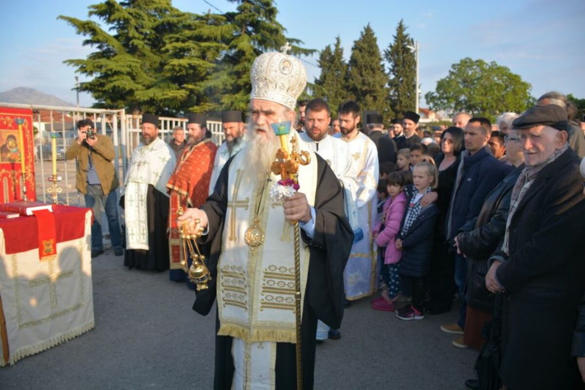 Na toj lokaciji je održana liturgija koju je predvodio mitropolit Amfilohije sa sveštenstvom pred par stotina vjernika i mještana tog naselja. Skup su obezbjeđivale makar dvije policijske patrole, ulica je bila zatvorena za saobraćaj, a među narodom bilo je i nekoliko inspektora u civilu. Dakle, predstavnici policije, kako i treba, bili su svjedoci tog skupa. Možda su ljudi imali drugi zadatak, pa nijesu vidjeli trenutak kada je sveštenstvo sa narodom ušlo u pijacu, kroz malu kapiju.