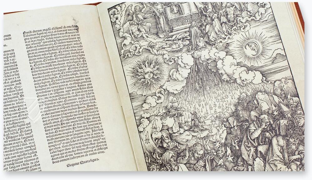 Njegov slavni ciklus naslovljen “Apocalipsis cum figuris” čine petnaest grafičkih listova (šesnaest s naslovnicom) rađenih u tehnici drvoreza. Ciklus je dovršen 1498. godine. Uz majstorove ilustracije, na poleđini svakog grafičkog lista bio je odštampan tekst na koji se ilusracija odnosi. Tako spojen literarni i likovni izraz, složen u formi knjige, omogućavao je da se uspoređujući tekst sa slikom u potpunosti sagleda likovna izražajnost i impresivna snaga tih grafičkih listova, nihovog simboličkog bogatstva i tehničke vitruoznosti.