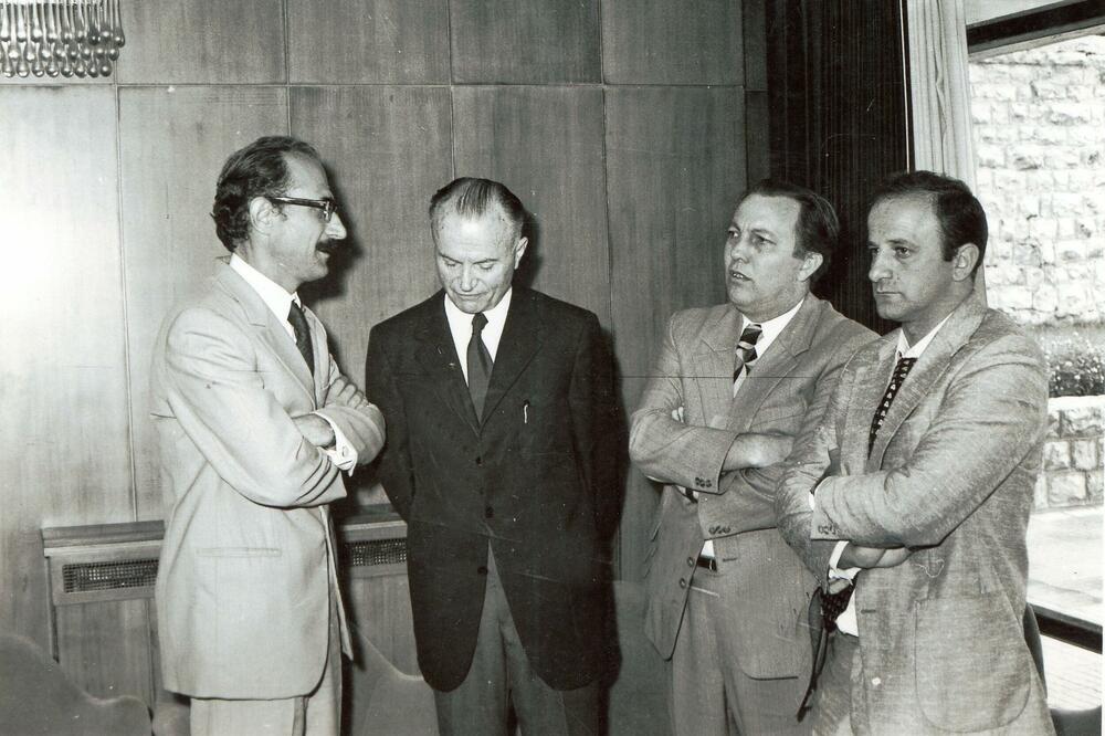 Struga, 26. avgusta 1973. Slijeva: Sreten Perović, Radovan Zogović, Radoslav Rotković i Slobodan Vuković, Foto: Privatna arhiva