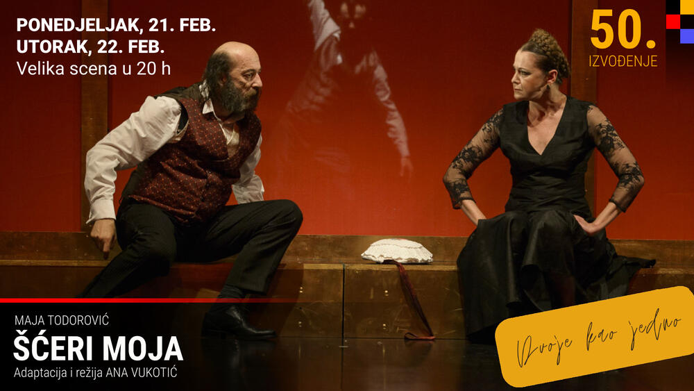 Po tekstu Maje Todorović i u režiji Ane Vukotić, ova drama će večeras biti izvedena na Velikoj sceni Crnogorskog narodnog pozorišta jubilarni, 50. put, u 20 časova. Veliki broj izvođenja i niz nagrada komad je osvojio za relativno kratko vrijeme opstajući i u okolnostima kada je pandemija virusa korona zatvorila vrata teatara, a rigorozne mjere možda posebno izraženo pogodile tu sferu.