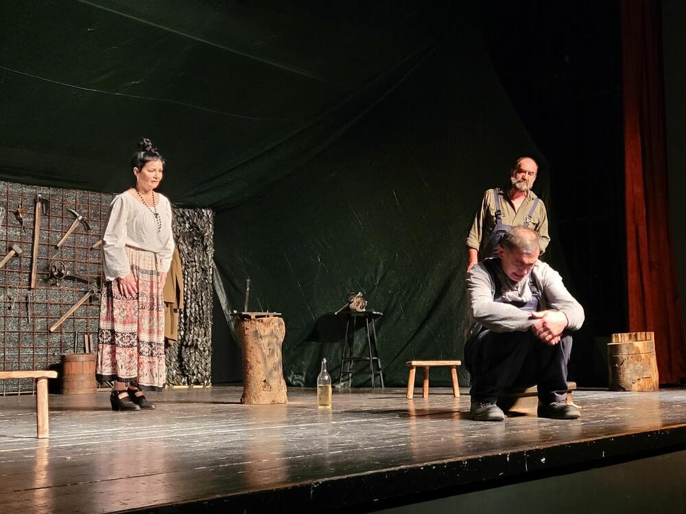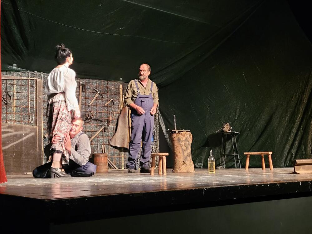 U predstavi "Kovači" igrali su Sanja Ćirović, Predrag Vukojević, Vlado Tomović i Momčilo Miladinović.