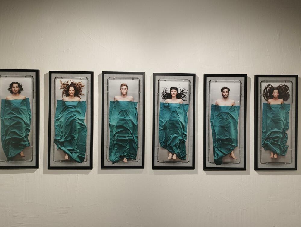 ”Memento” je naziv prvog dijela izložbe i dijeli naziv sa kompletnim naslovom trilogije, odnosno izložbe. Taj prvi dio sam po sebi funkcioniše iz dvije cjeline, kao što ste primijetili, sa obdukcijskim stolovima i portretima. Ideja je bila da ljudi prvo naiđu na portrete i da se na neki način poistovijete sa prikazanim ljudima. Tako izdvojeni portreti mladih ljudi djeluju skoro pa kao portreti za ličnu kartu ili neki dokument, lišeni su bilo kakvih kreativnih momenata, kao da subjekat ne postoji, već postaju samo klasični objektiv i osvjetljenje nad njima za koje bih rekao da predstavlja mekano medicinsko svjetlo.